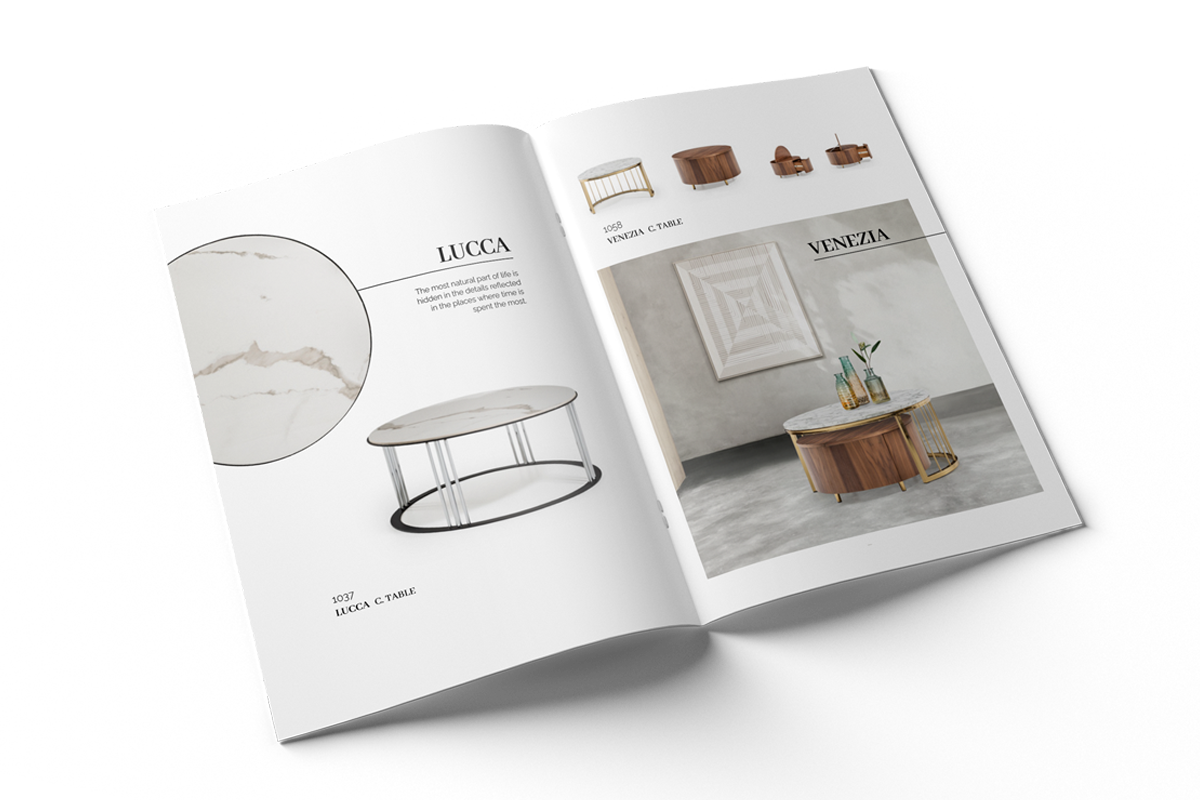 Farklı formların bir araya geldiği By Sehpacı katalog tasarımı.